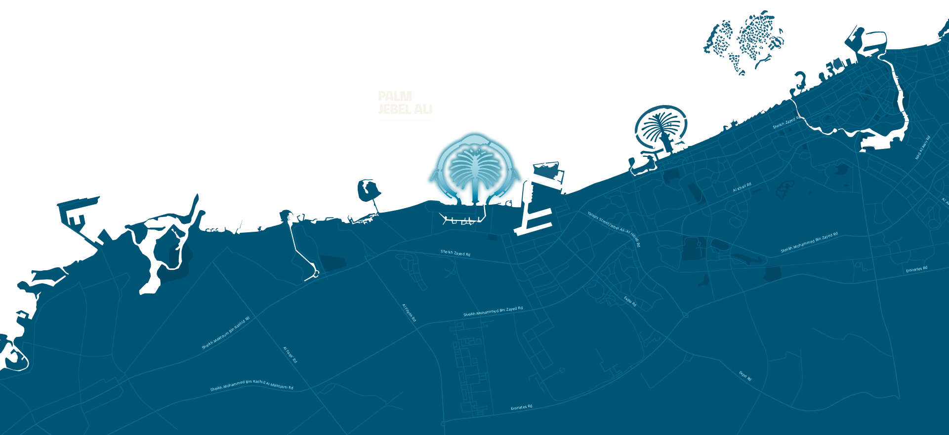 With everything needed to live a full and balanced lifestyle, you won’t need to leave the islands. Palm Jebel Ali is perfectly positioned between Port Jebel Ali and the Jebel Ali Marine Sanctuary. This exceptional location is well connected to other areas of Dubai via the Sheikh Zayed Road (E11), and Al Maktoum Airport is reachable in just under 20 minutes.